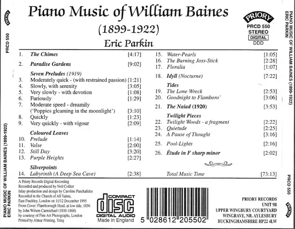 | Titre | Piano Music Of William Baines |