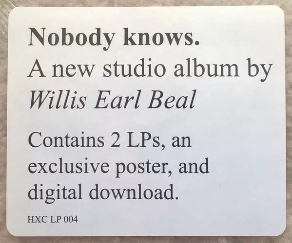 Willis Earl Beal: Nobody Knows La version sur Le vinyle 2LP en Norme édition. Cette édition particulière a été publiée en ÉTATS-UNIS dans la maison d'édition HXC Recordings Le 5 septembre 2013. Album couvre tous les genres Pop, Blues et Funk / Soul.