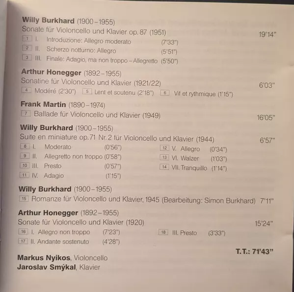| Artiste | Arthur Honegger | Frank Martin | Willy Burkhard |