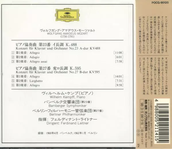 | Artiste | Wolfgang Amadeus Mozart | Berliner Philharmoniker | Bamberger Symphoniker | Wilhelm Kempff | Ferdinand Leitner |