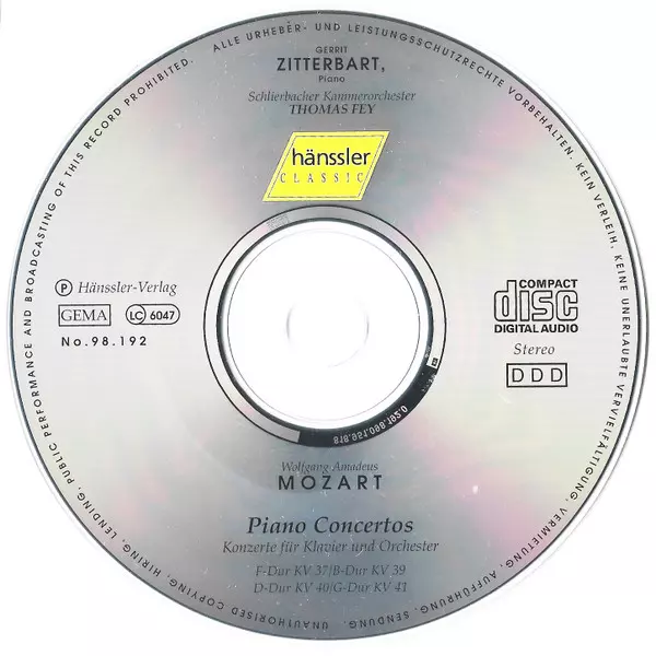 | Titre | Piano Concertos (KV 37/39/40/41) |