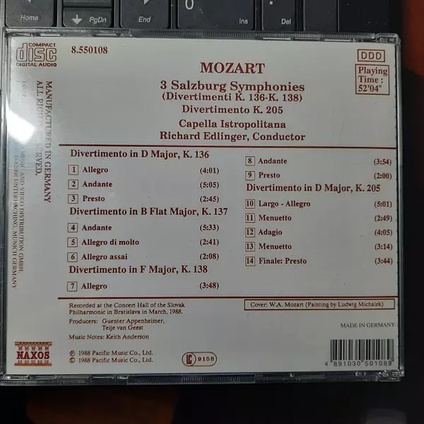 | Artiste | Wolfgang Amadeus Mozart | Capella Istropolitana | Richard Edlinger |