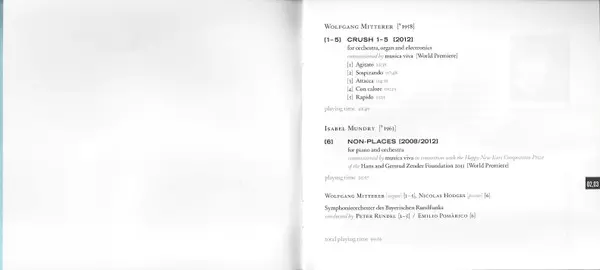 | 6 | Isabel Mundry: Non-Places For Piano And Orchestra (2008/2012) | 25:57 min | |