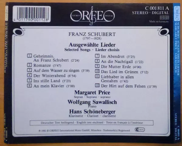 Artiste | Franz Schubert | Wolfgang Sawallisch | Margaret Price | Hans Schöneberger |