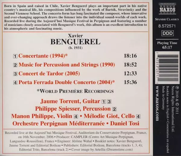 CD Xavier Benguerel: Concertante • Music For Percussion And Strings • Concert De Tardor • Porta Ferrada Double Concerto