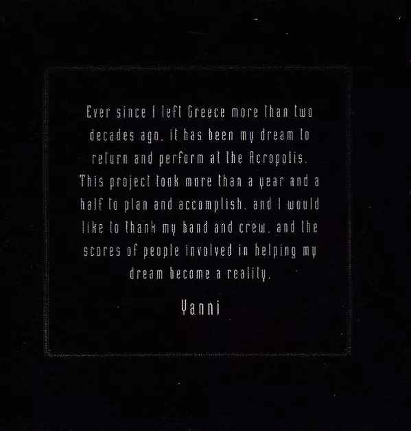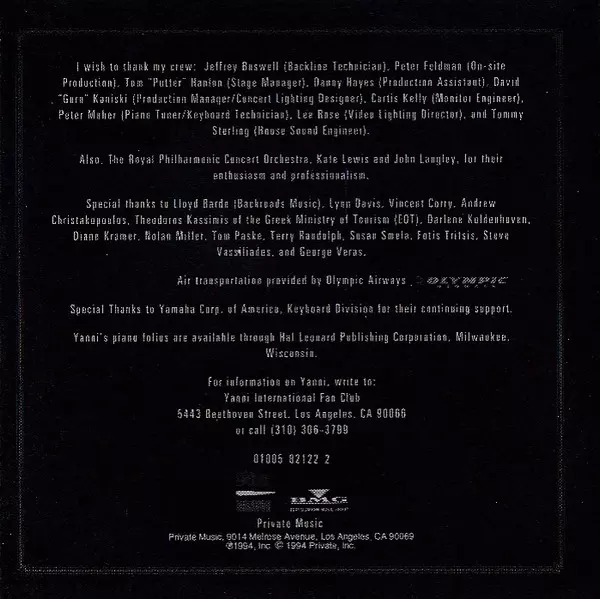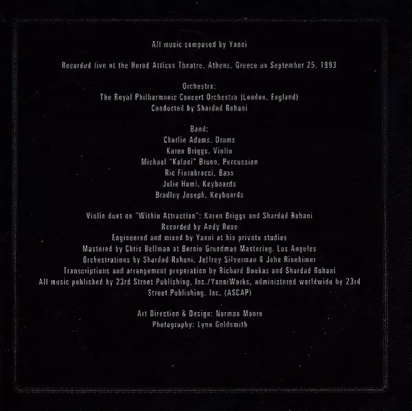 | Artiste | Yanni | The Royal Philharmonic Concert Orchestra |
