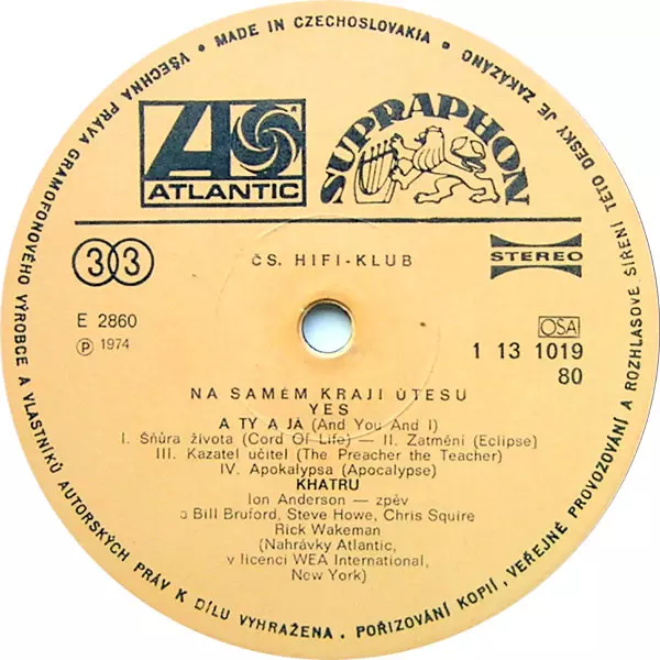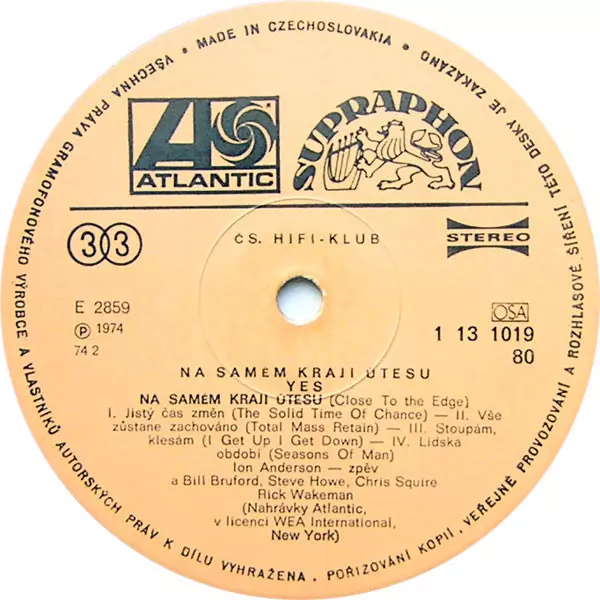 | Maisons d'édition | Supraphon | Atlantic | Čs. Hifi-klub |