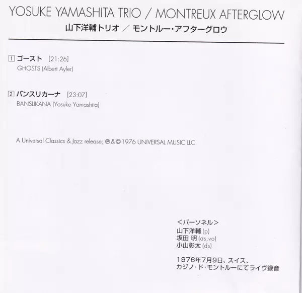 | Artiste | Yosuke Yamashita Trio |