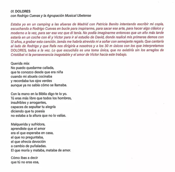 | 1 | Zahara, Rodrigo Cuevas, Agrupación Musical Ubetense: Dolores | ||