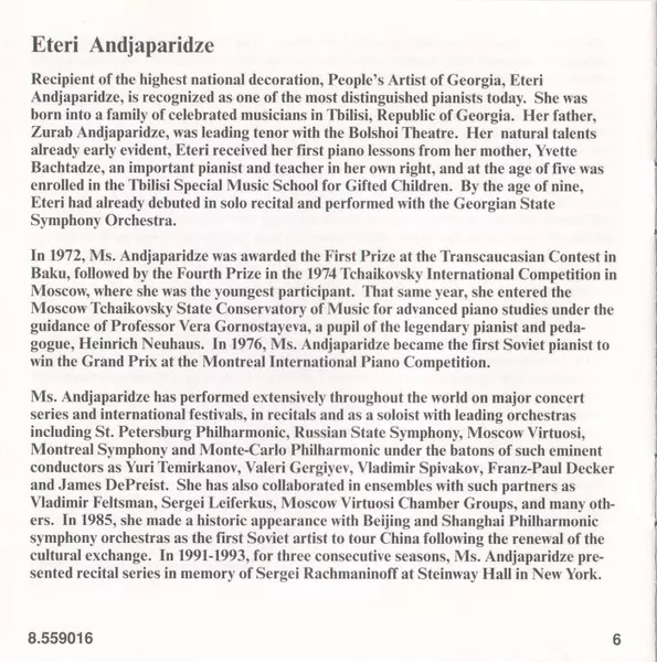 | Artiste | Eteri Andjaparidze | Zez Confrey |