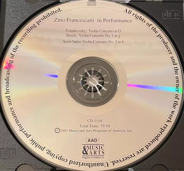 | Artiste | Pyotr Ilyich Tchaikovsky | Camille Saint-Saëns | Max Bruch | Zino Francescatti |
