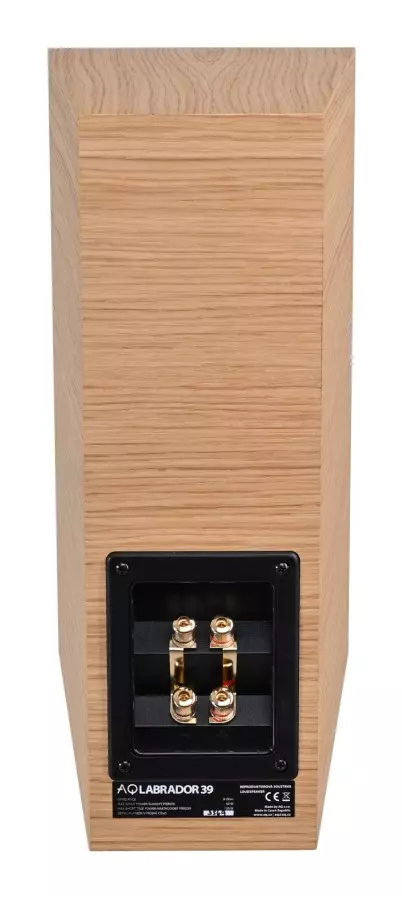 The Labrador 39 two-way loudspeaker has a front-mounted bass-reflex sound system.The atypical trapezoid-shaped box is the result of precise measurements and the chosen shape is justified. It maximises rigidity while minimising parallel surfaces. Parallel surfaces are the cause of standing waves inside loudspeakers. If a sound wave propagates between them, it will subsequently reflect off the walls like an image off a mirror and cause unwanted superposition - the phenomenon where a new sound wave meets the original wave just reflected at the same point on its journey.In such cases, some frequencies become amplified, others attenuated, and unwanted distortion occurs. The sound in such cases is unpleasant, lacking dimension and detail - a typical manifestation of cheap loudspeakers. The very shape of the Labrador 39 has minimised the effect of parallel surfaces. Another positive factor is the small surface area of the individual baffles, as small surfaces resist resonances much better.