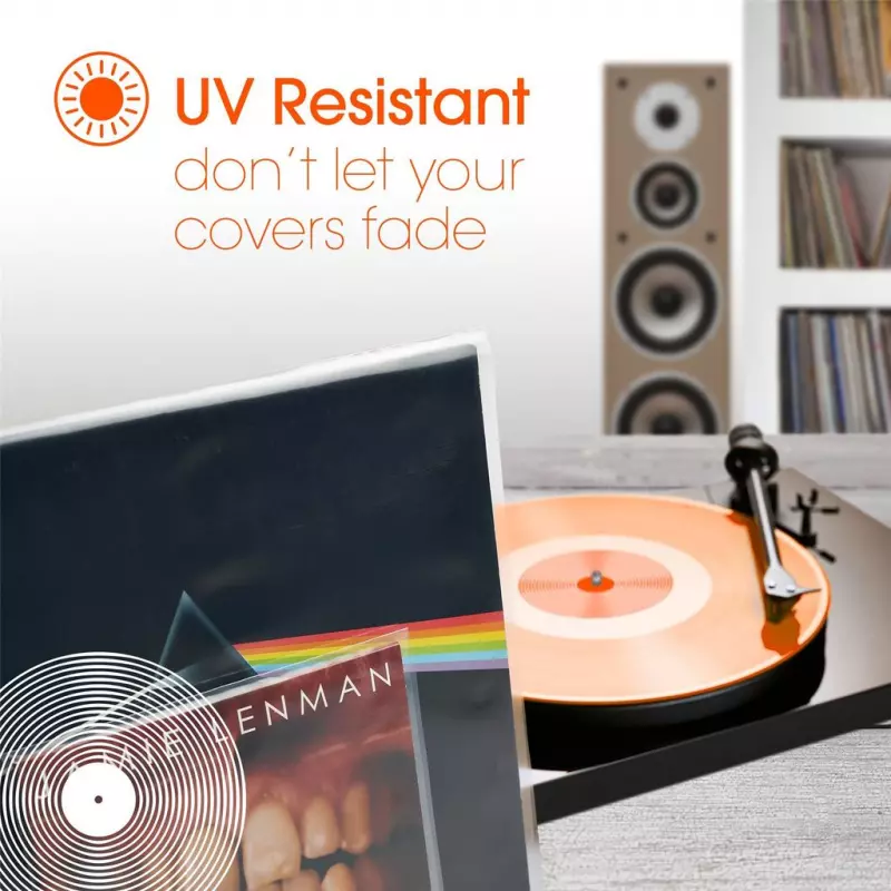 Super quality 400gsm outer PEHD High density polyethylene UV Protection sleeves for 12" LP vinyl records. Made from virgin polyethylene for the highest quality presentation and durability.