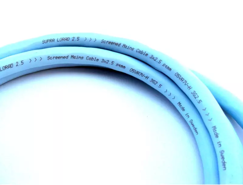 LoRad 3G2.5 MK II patented high-end double shielded network cable Excellent flex and flexibility. The outer insulation is treated to prevent aging. Meets all EU standards. Suitable for installation under plaster! Colour: Ice Blue, tinned, material 99.999% OFC, diameter: 11 mm, weight: 172 g/m, R: 6.8 Ohm/km, 250 V, 10A Available length...